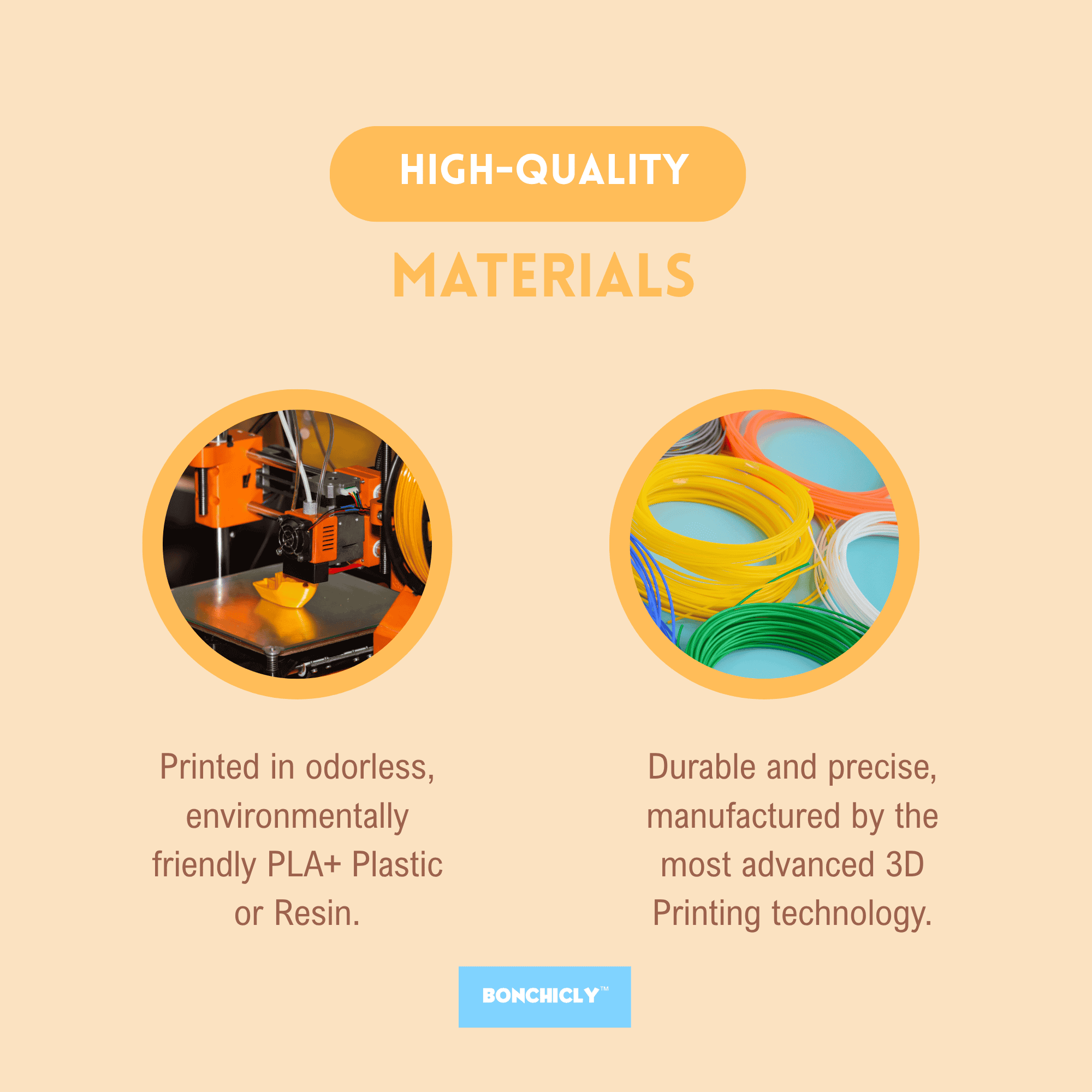 · 3D Printing Characteristics: Minor imperfections such as layer lines, seam marks, or a slight packaging odor are normal and not considered grounds for return. These are inherent to 3D printing and add to the unique charm of each piece.